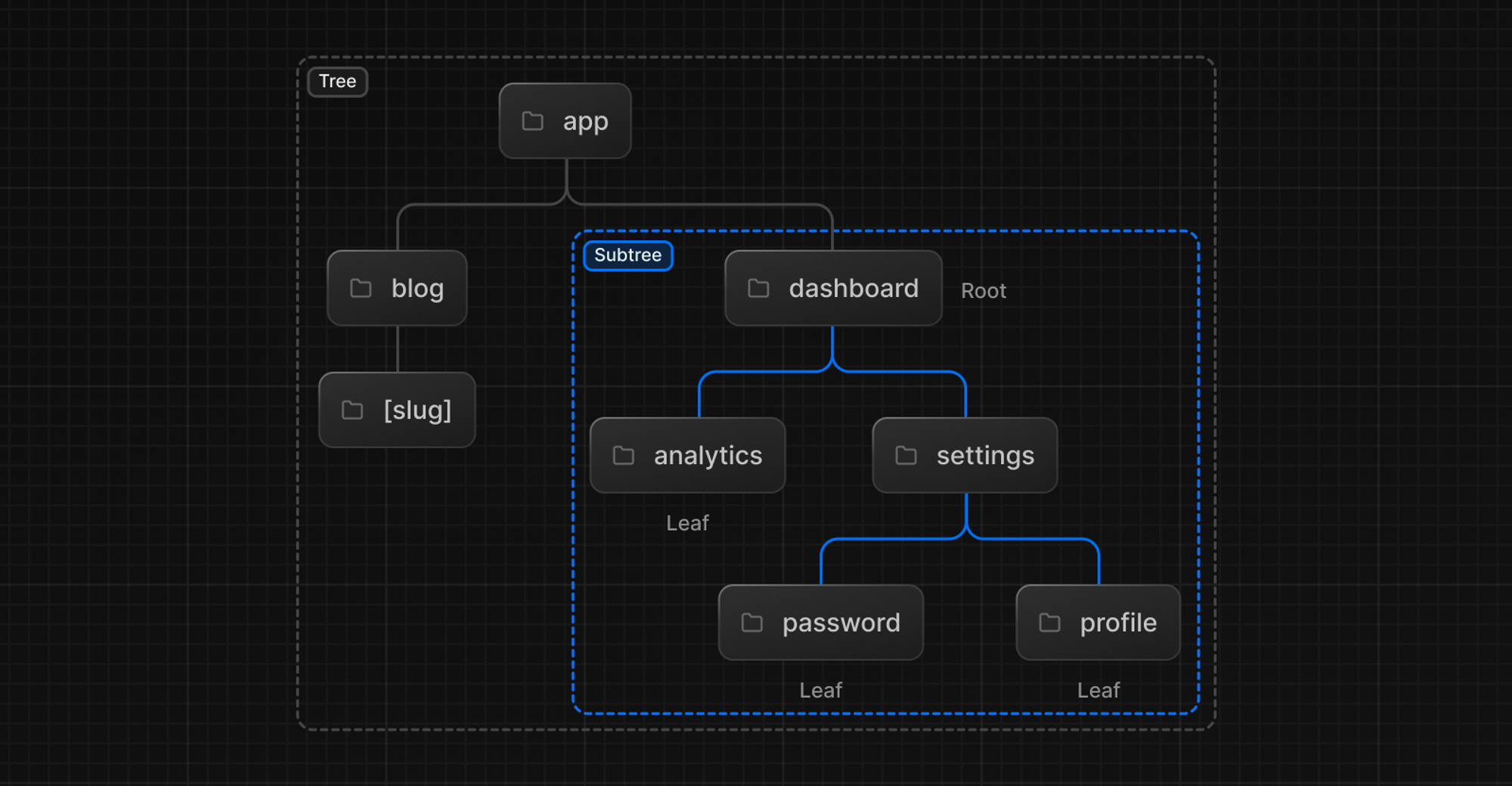 - Leaf (리프): 자식이 없는 서브트리의 노드로, URL 경로에서의 마지막 세그먼트 등이 있습니다.