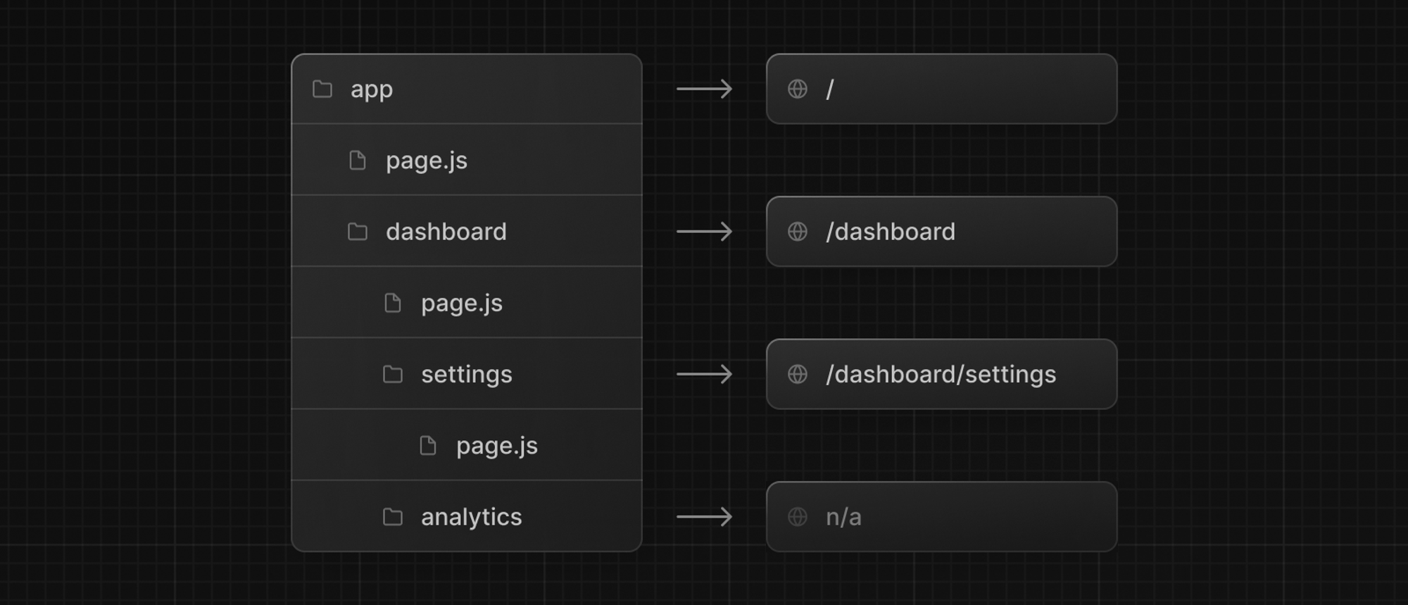 위 그림에서 /dashboard/analytics URL 경로는 해당 page.js 파일이 없기 때문에 공개적으로 액세스 할 수 없습니다. 이 폴더는 구성 요소, 스타일시트, 이미지 또는 기타 배치된 파일을 저장하는 데 사용할 수 있습니다.